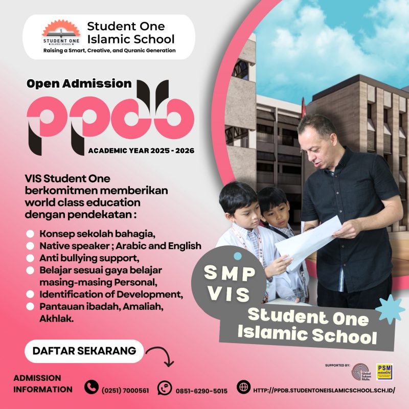 Siarandepok.com – StudentOne_Setelah sukses dengan TK dan SD, tahun ajaran 2025/2026 mendatang Student One Islamic School membuka jenjang Sekolah Menengah Pertama (SMP). Berbeda dengan SMP pada umumnya, Student One membuka SMP VIS (Vovational Islamic School). Siswa sekolah ini difokuskan pada tiga peminatan, yakni Middle East Program, ICT (Information and Communication Technology) Program, dan Business Management Program.